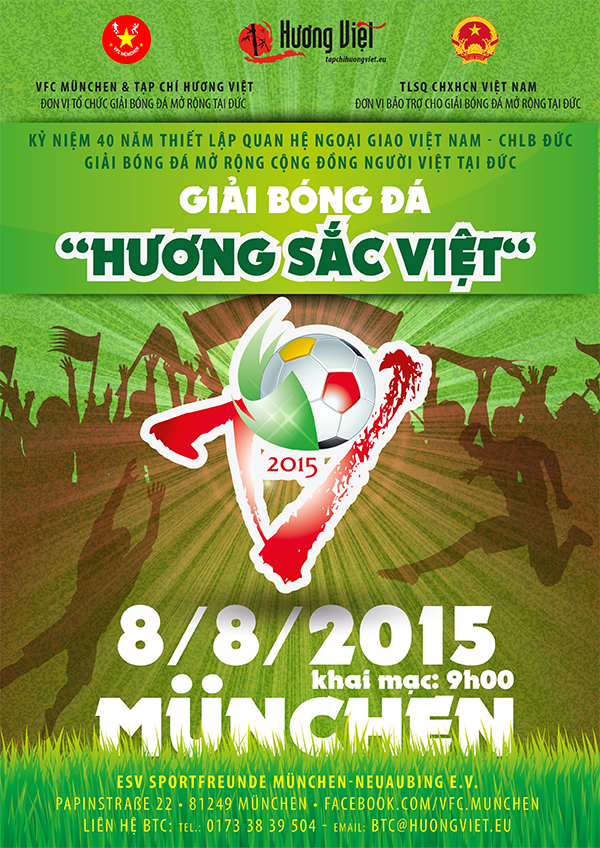Nhân dịp Kỷ niệm 40 năm thiết lập quan hệ ngoại giao CHLB Đức - Việt Nam, Tạp chí Hương Việt và VFC München tổ chức giải bóng đá mở rộng cộng đồng người Việt tại CHLB Đức mang tên "Hương Sắc Việt".