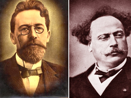 Chekhov và Alexandre Dumas (phải)4 - Alexandre Dumas (cha) (1802 - 1870). Ông viết ra những cuốn tiểu thuyết phiêu lưu khiến mình trở thành nhà văn Pháp được đọc nhiều nhất thế giới. Ông còn là nhà viết kịch và nhà báo. Các tác phẩm của ông đã được dựng phim 230 lần, nhiều nhất là The Three Musketeers (Ba người lính ngự lâm). The Count Of Monte Cristo (Bá tước Monte Cristo), Queen Margot (Hoàng hậu Margot)...
